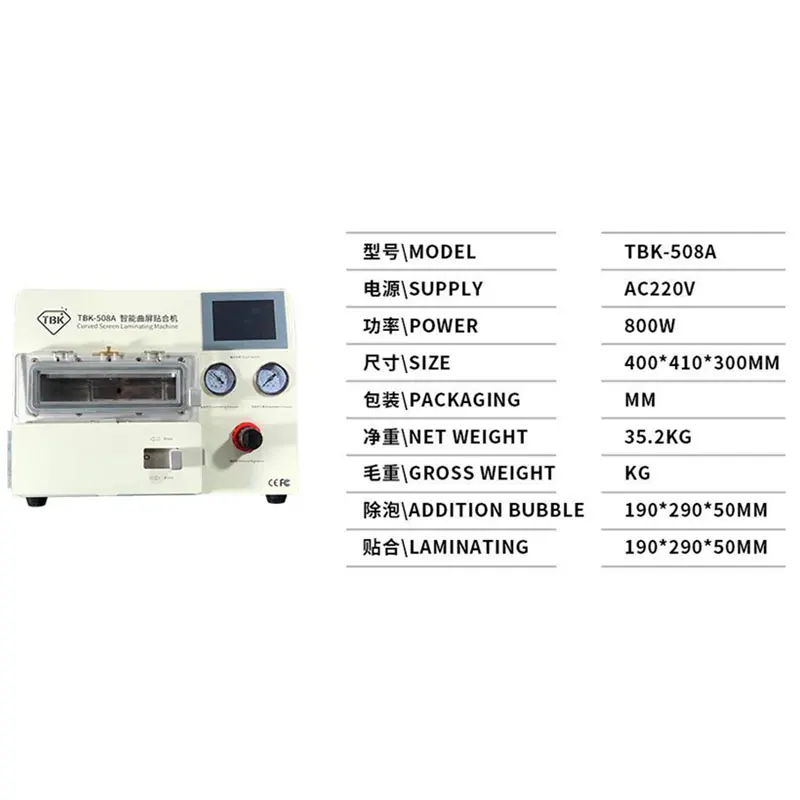 - Product name : New TBK-508A Curved Screen Laminating and Bubble Machine LCD Edge Laminating Machines For Samsung i